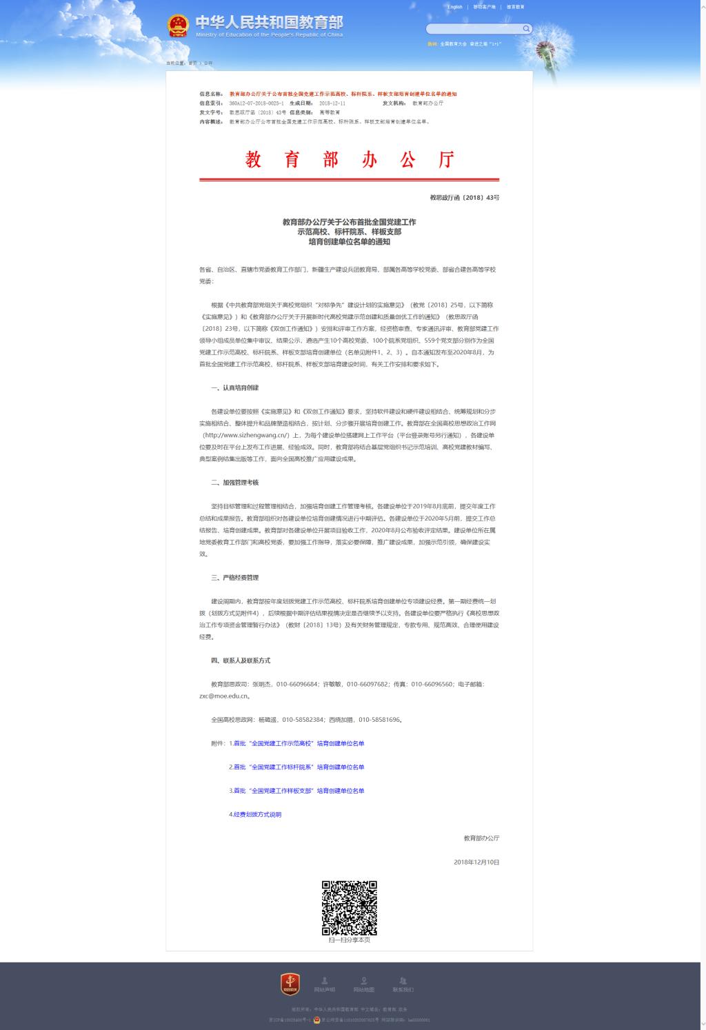 根据教育部办公厅《关于公布首批全国党建工作示范高校、标杆院系、样板支部培育创建单位名单的通知》(教思政厅函〔2018〕43号),公司员工236党支部入选首批“全国党建工作样板支部”名单。员工236党支部是yl6809永利实施“支部+社团”融合共建新模式的重要支点,多年来,员工236党支部始终坚持“围绕中心抓党建,抓好党建促发展”的工作思路,以活力党支部建设为抓手,品牌化建设为载体,形成“支部+”推动支部建设的成功案例。“支部+社团”融合共建,党员志愿服务熠熠生辉;“支部+成才”成绩斐然,员工矢志成才成效显著;“支部+育人”润物无声,“最美系列”品牌影响深远;“支部+阵地”掷地有声,支部堡垒作用强力发挥。员工236党支部入选首批“全国党建工作样板支部”,是支部继2012年被山西省高校工委授予“先进基层党组织”称号、2016年被山西省委授予“先进基层党组织”称号、2018年入选教育部第二届全国高校“两学一做”支部风采展示活动员工党支部十大“推荐展示成果”,之后,在打造品牌建设过程中的又一个标志性成果。通过“全国党建工作样板支部”的创建,支部建设政治功能将更加突出、管理党员更加规范、堡垒作用更加显著、围绕中心更加有力、挖掘典型更加充分、支部凝聚力更强、服务师生更有力!本次“全国党建工作样板支部”评选是经资格审查、专家通讯评审、教育部党建工作领导小组成员单位集中审议,遴选产生的。全国共有10个党建工作示范高校、100个党建工作标杆院系、559个党建工作样板支部入选全国高公司党建示范创建和质量创优工作名单。山西省共有1个党建工作标杆院系、16个党建工作样板支部通过遴选,入选全国高公司党建示范创建和质量创优工作名单。