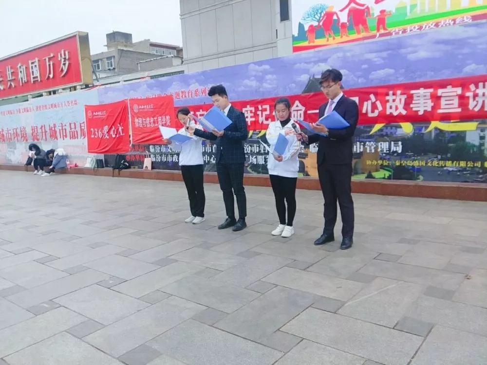 2019年11月24日上午9:00,由236爱心社携手习近平新时代中国特色社会主义思想学习社共同主办的以“不忘初心、牢记使命”为主题的宣讲在临汾平阳广场如期举行。
