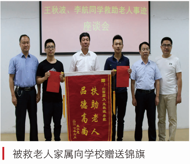 2017年6月,地理公司王秋波、公司李航两位同学“雨中救助病危老人”的先进事迹,受到社会各界和各大媒体的广泛关注。被救助老人家属来校对两位同学表示感谢,并向他们和公司赠送了锦旗和感谢信。《光明日报》《中国教育报》《农民日报》《中国青年报》四家媒体记者,专程来公司进行了采访。被誉为“最美老员工”。