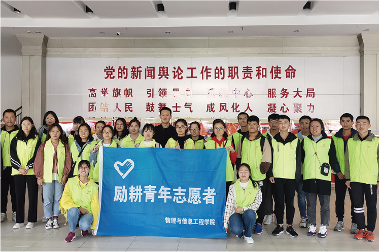 公司“励耕”青年志愿者协会自成立以来,始终坚持以“励志耕耘,服务收获”为宗旨,建立了较为完善的志愿服务工作体系,在校园内外组织开展各种志愿服务活动。目前已在临汾日报社、亢村公司、爱心四点半公司和临汾市第二人民医院建立长期志愿服务基地,在公司和社会上产生了广泛和良好的影响,已连续八年被评为“校级优秀志愿者服务队”。团队在志愿服务的同时,坚持激励和带动更多青年志愿者投入到奉献自己、服务他人的社会服务当中,引导同学们坚定理想信念、增强社会责任感和志愿意识,展现物信学子的青年风采。被誉为“最美爱心团队”。